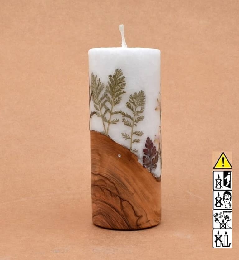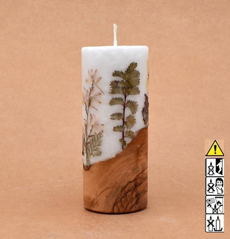 Blumendekor handgefertigt Stumpen Ø 60 x 150 mm mit Holz