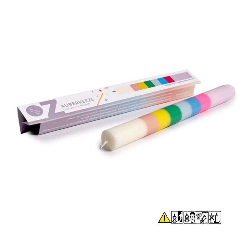 Jede Kerze ist einzigartig. In Handarbeit werden verschiedene Farben des Kerzenwachses zusammengebracht. Nur so ist es möglich, die Kerzen in dieser Präzision anzufertigen. Sollte die Kerze an einer der Farbschichten gelockert sein, liegt dies an ihrer außergewöhnlichen eine optimale Farbbrillanz empfehlen wir, die Oberfläche der Kerze vorsichtig mit einem weichen Tuch abzureiben.