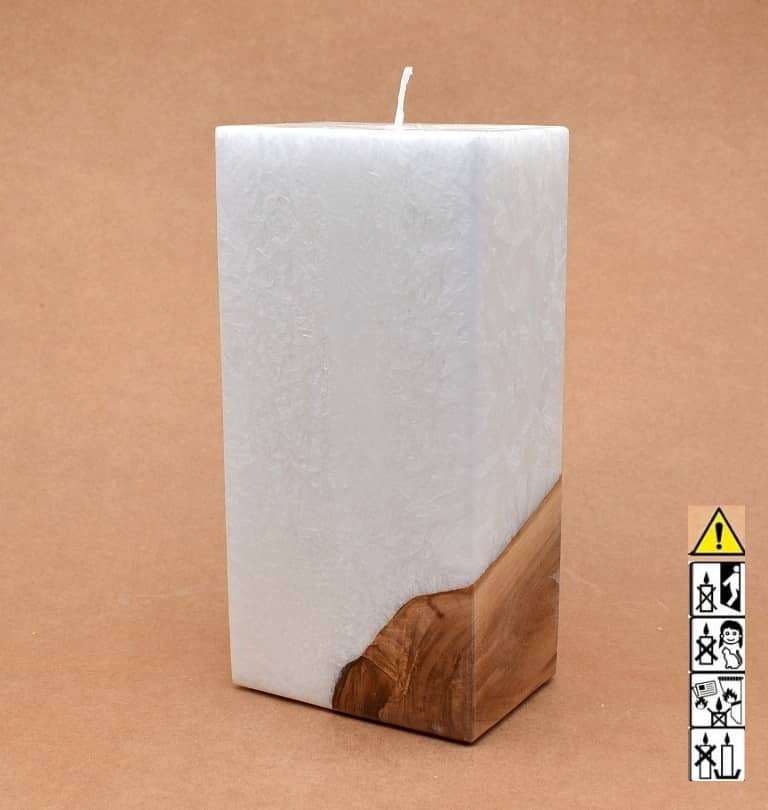 Quader Kerze in Stearinoptik 70 x 100 x 200 mm mit Docht mit 1 x Holz.