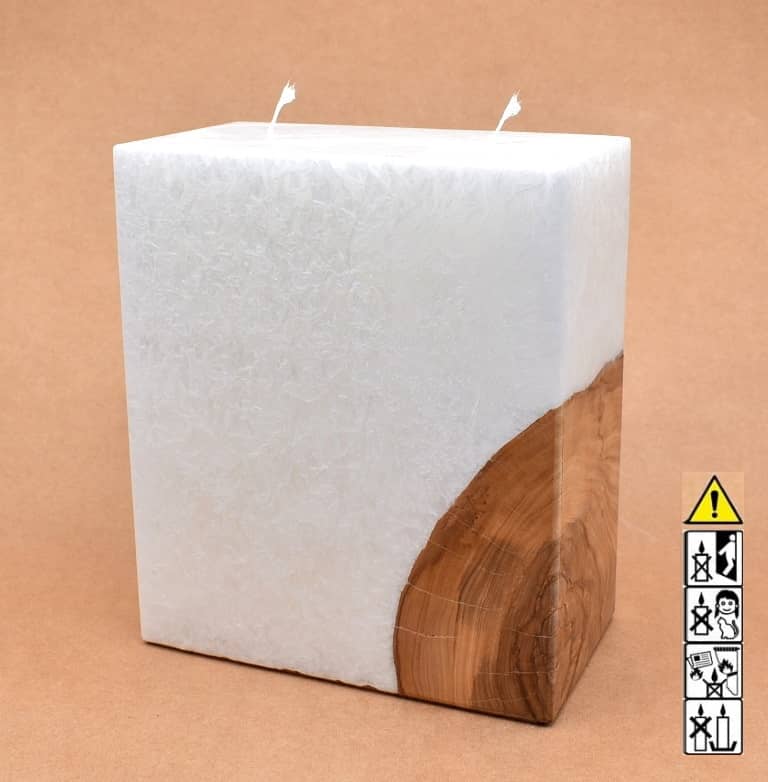 Quader Kerze in Stearinoptik 95 x 175 x 200 mm mit 2 x Holz / 2 x Docht.