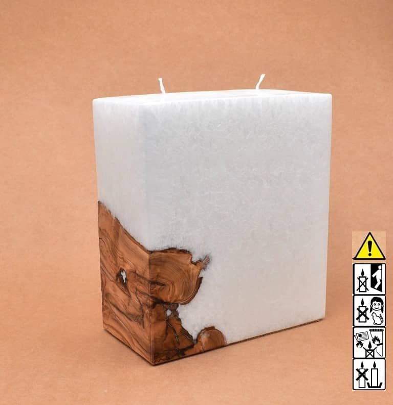 Quader Kerze in Stearinoptik 95 x 175 x 200 mm mit 2 x Holz / 2 x Docht.