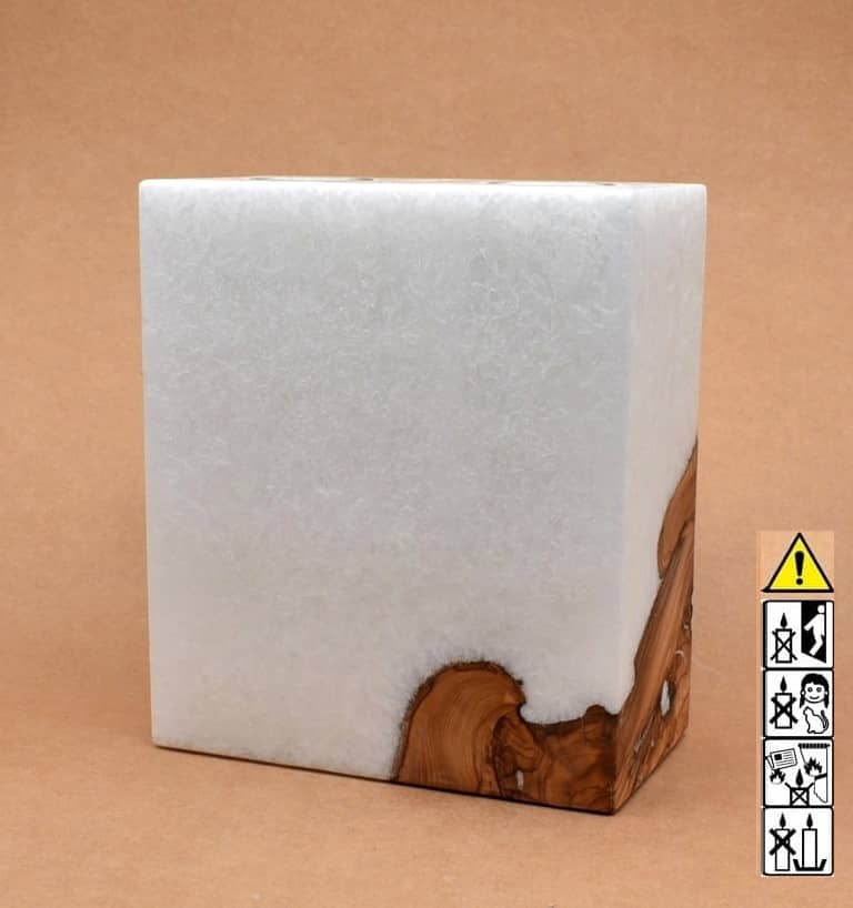 Quader Kerze in Stearinoptik 95 x 175 x 200 mm mit 2 x Holz / 2 x Teelicht.