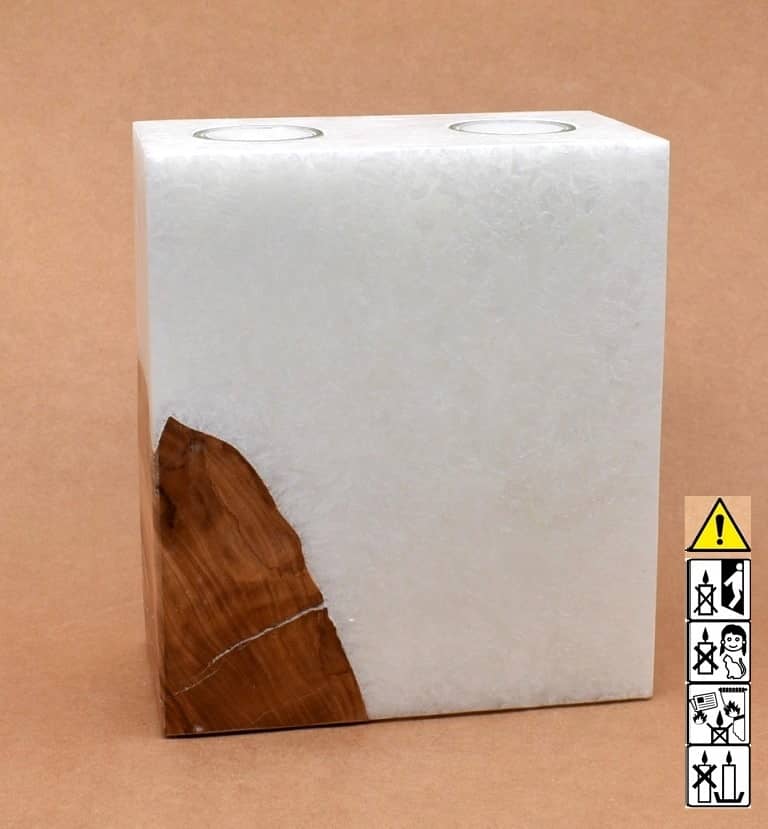 Quader Kerze in Stearinoptik 95 x 175 x 200 mm mit 2 x Holz / 2 x Teelicht.