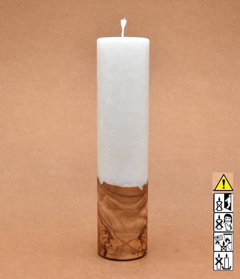 - als Hochzeitskerze mit Holz für die evangelische kirchliche Trauung.