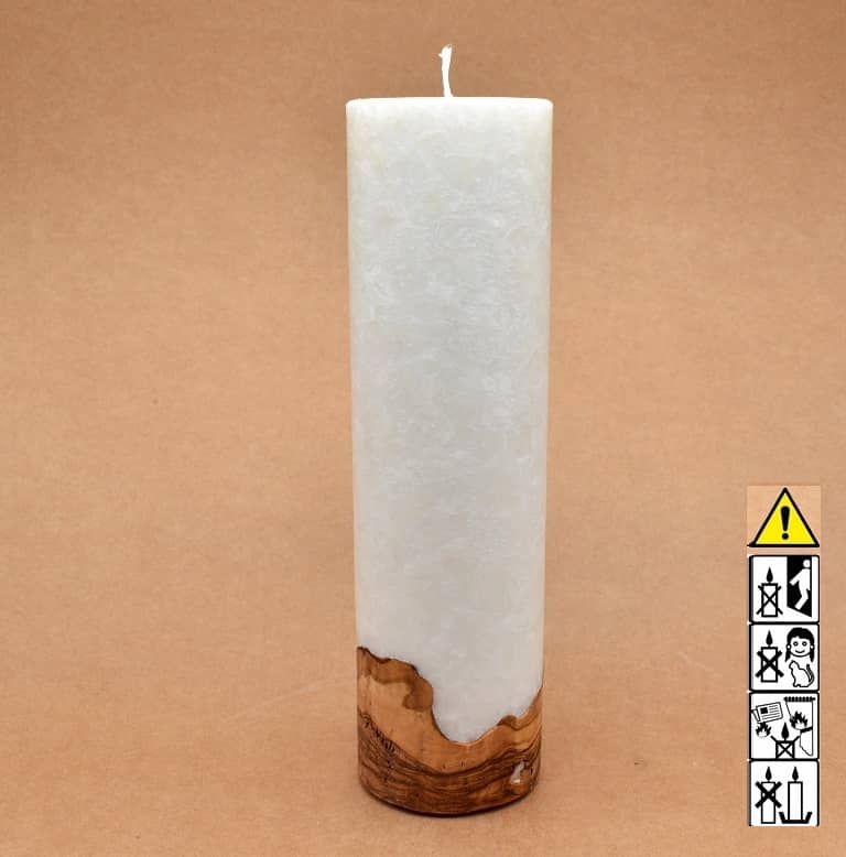 Runde Kerze in Stearinoptik 70 x 250 mm mit Holz und mit Dochteinsatz.