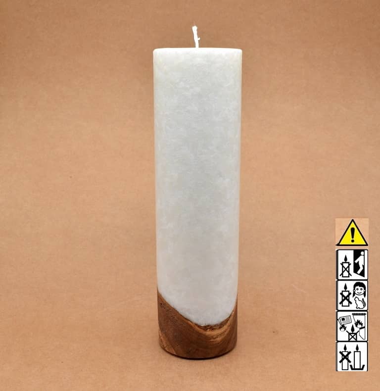 Runde Kerze in Stearinoptik 70 x 250 mm mit Holz und mit Dochteinsatz.