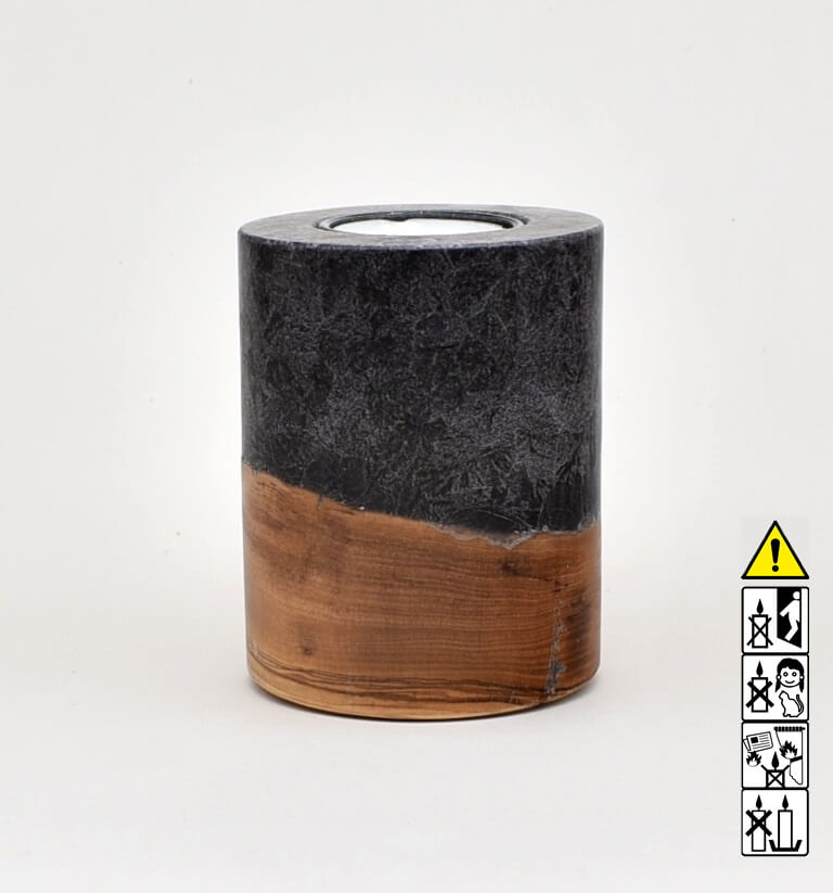 Kerze mit Holz Unikat Rund 80 x 100 mm mit Teelicht in schwarz