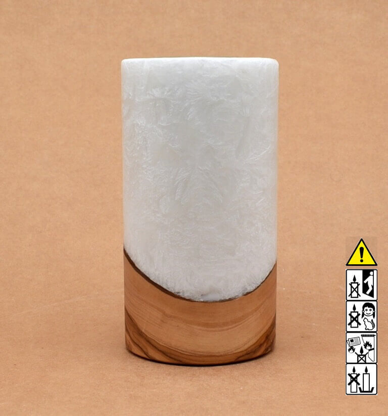 Jede Kerze mit Holz wird von Hand hergestellt und bearbeitet.