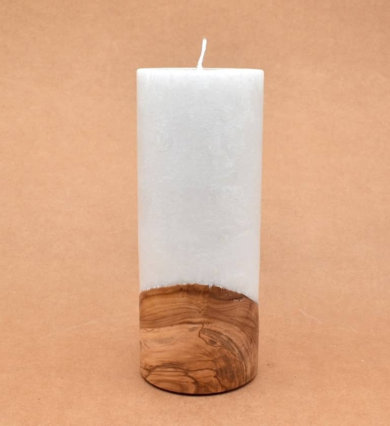 Jede Kerze mit Holz wird von Hand hergestellt und bearbeitet.