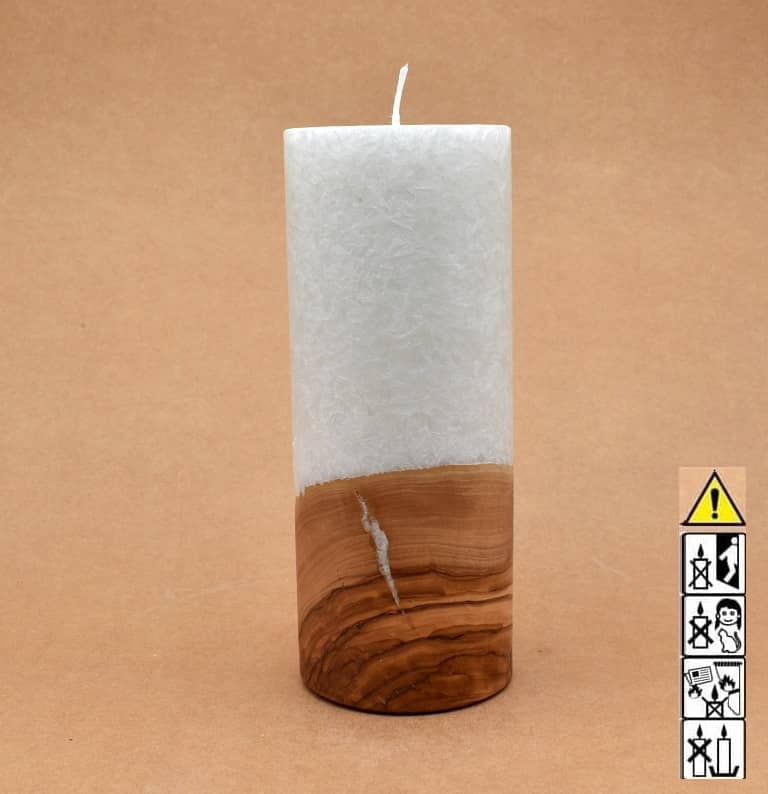 Kerze mit Holz Unikat Rund 80 x 200 mm mit Docht Nr.: 4
