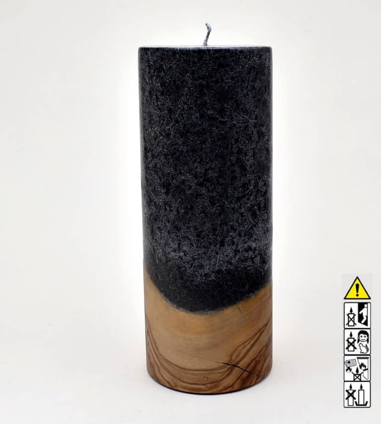 Kerze mit Holz Unikat Rund 80 x 200 mm mit Docht in schwarz
