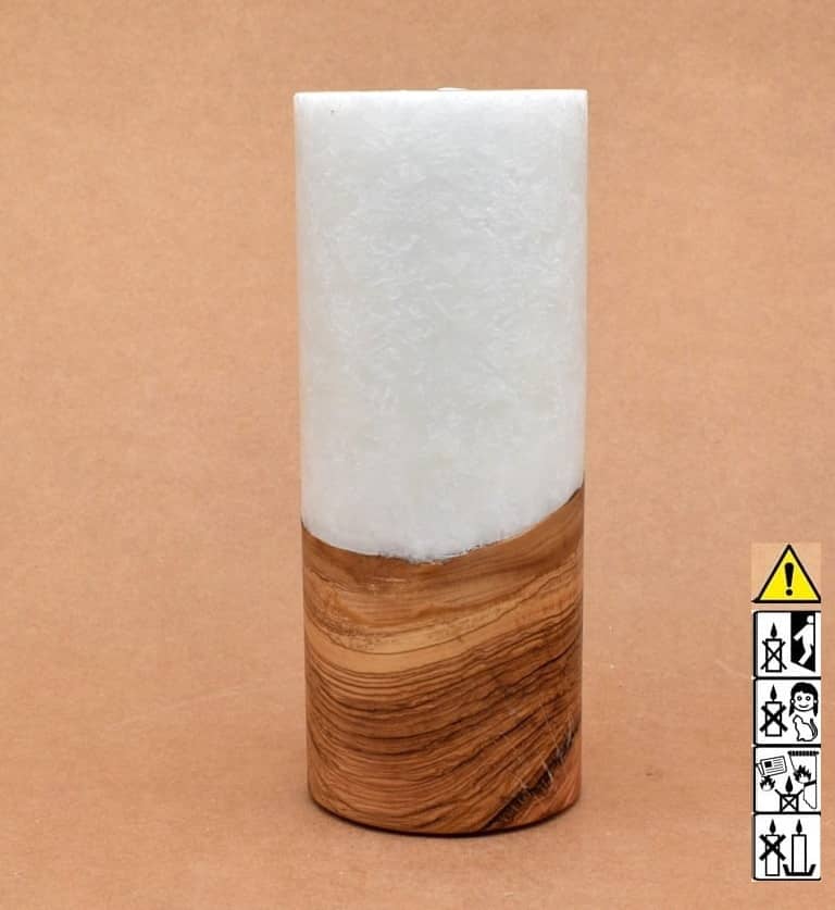 Runde Kerze in Stearinoptik 80 x 200 mm mit Teelicht und Holz.