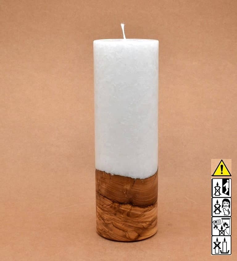 Runde Kerze in Stearinoptik 80 x 250 mm mit Holz und mit Dochteinsatz.