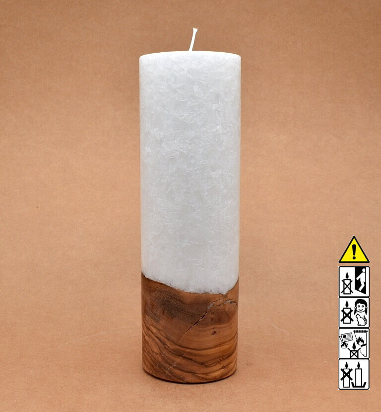 Runde Kerze in Stearinoptik 80 x 250 mm mit Holz und mit Dochteinsatz.