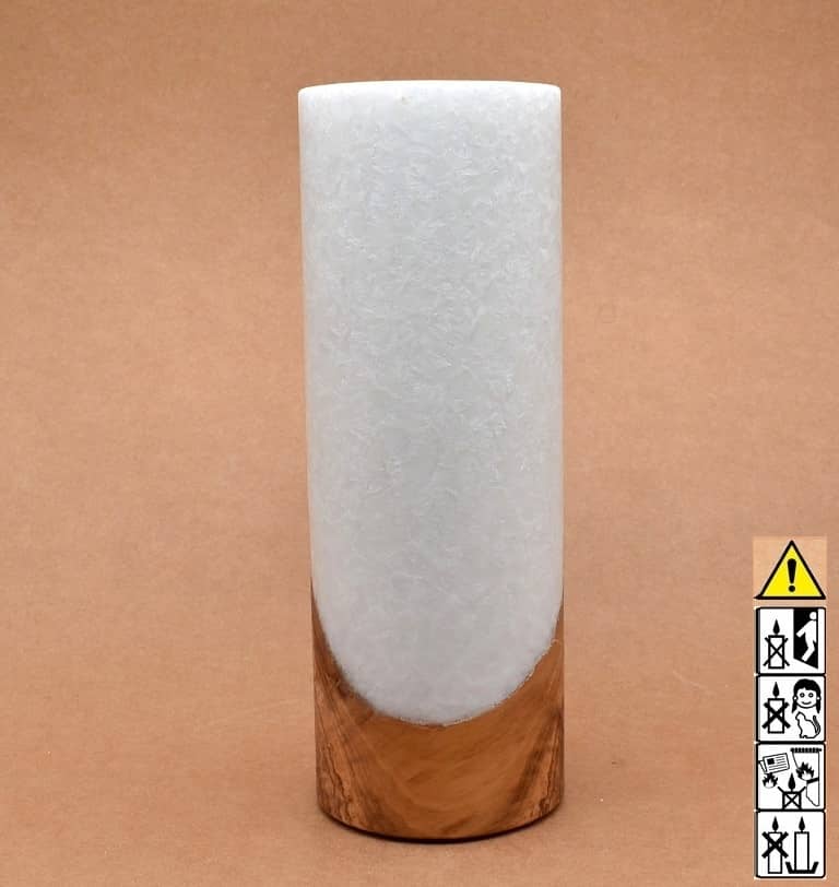 Runde Kerze in Stearinoptik 90 x 250 mm mit Teelicht und Holz.