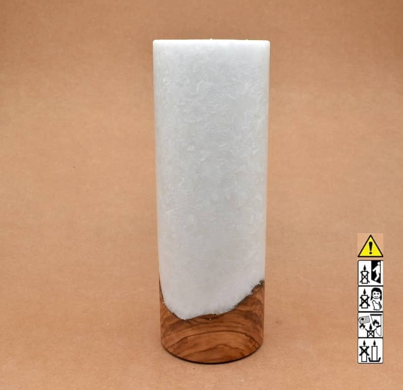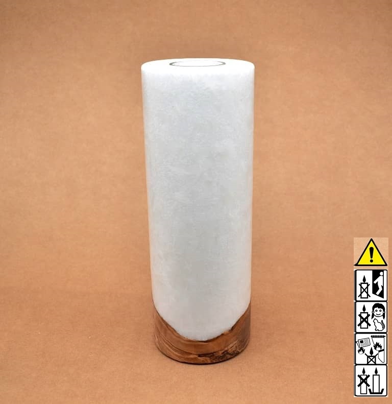Runde Kerze in Stearinoptik 90 x 250 mm mit Teelicht und Holz.