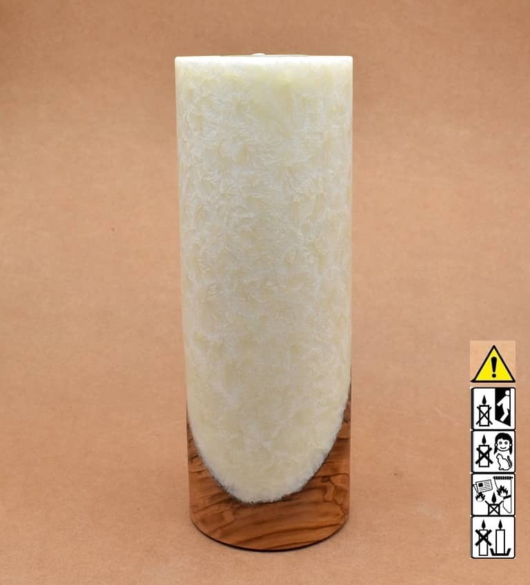 Kerze mit Holz Unikat Rund 90 x 250 mm mit Teelicht in elfenbein Nr.: 1