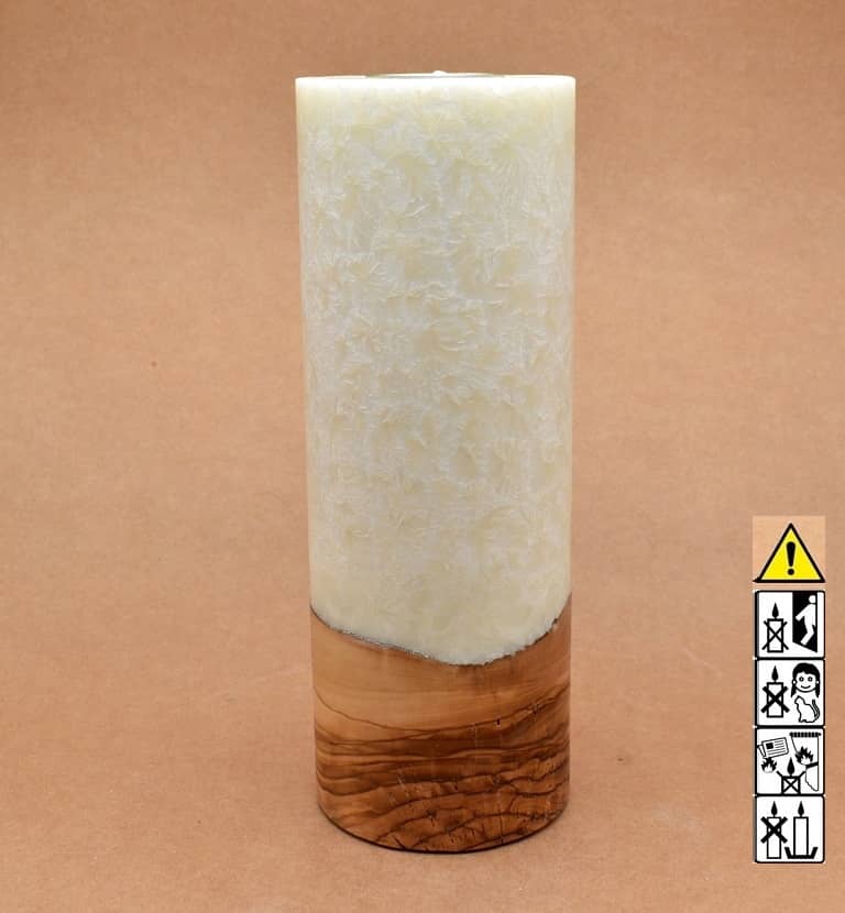 Kerze mit Holz Unikat Rund 90 x 250 mm mit Teelicht in elfenbein Nr.: 3
