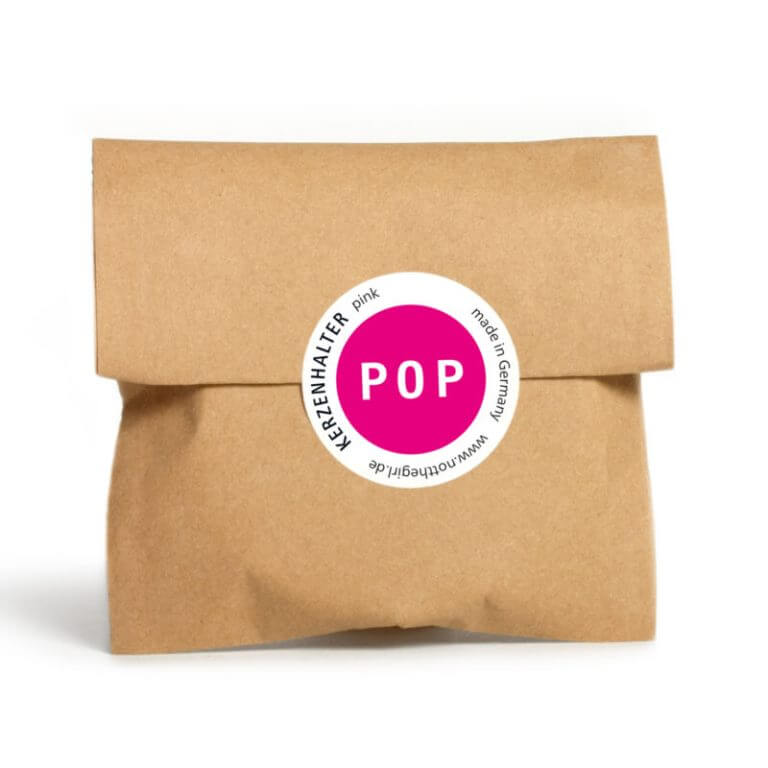 Verpackt wird POP in einer umweltfreundlichen braunen Naturpapiertüte mit Farbpunktaufkleber, der die jeweilige Farbvariante kennzeichnet.