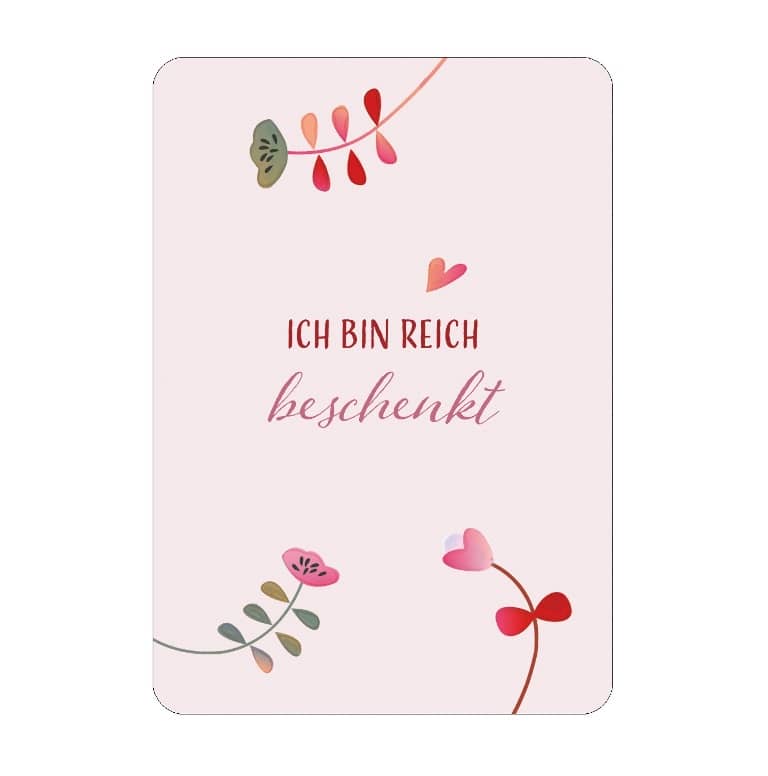 Das edle Seidenband mit dem dekorativen Herz-Anhänger ermöglicht eine besonders leichte Entnahme der Karten.